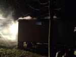 Am 16.12.2013 gegen 17.40 Uhr heulten in Wallmenroth die Sirenen. Der Bauwagen am Sportplatz hatte "Feuer" gefangen und es wurde eine Person vermisst. Ein Atemschutztrupp ging in den Wagen vor und die restlichen Kräfte bauten eine Wasserversorgung vom Unterflurhydranten auf. Desweiteren wurde die Einsatzstelle ausgeleuchtet. |