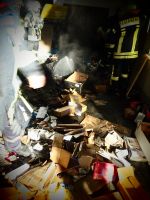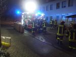 Vor Ort stellte sich ein Mülltonnenbrand an einer angrenzenden Hauswand heraus. Ein Trupp unter Atemschutz konnte den Brand mit dem Schnellangriff schnell unter Kontrolle bringen und ablöschen. Nach weiteren Kontrollen von Glutnestern und Nachlöscharbeiten konnte der Einsatz beendet werden. |